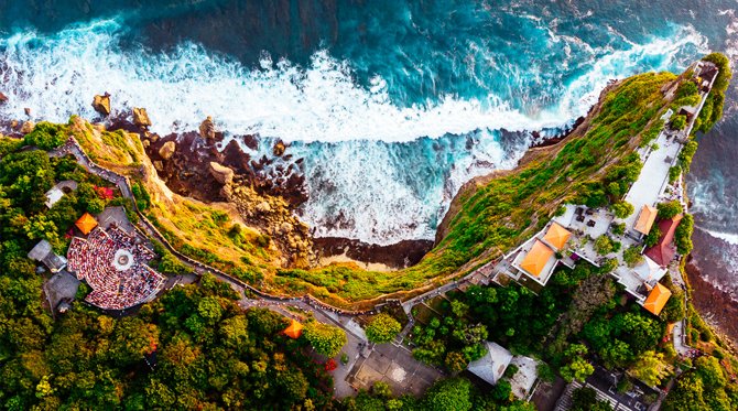 Apart from its religious significance, Uluwatu Temple offers breathtaking panoramic views of the Indian Ocean and the surrounding coastline. The dramatic cliffs against the backdrop of the setting sun create a memorable and picturesque scene.